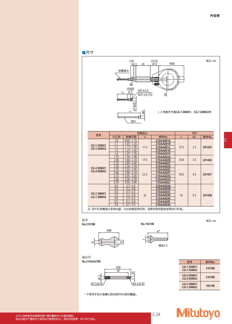 与小孔内径表台架(No.215-120-10)组合使用,可高效率测量多个小孔。